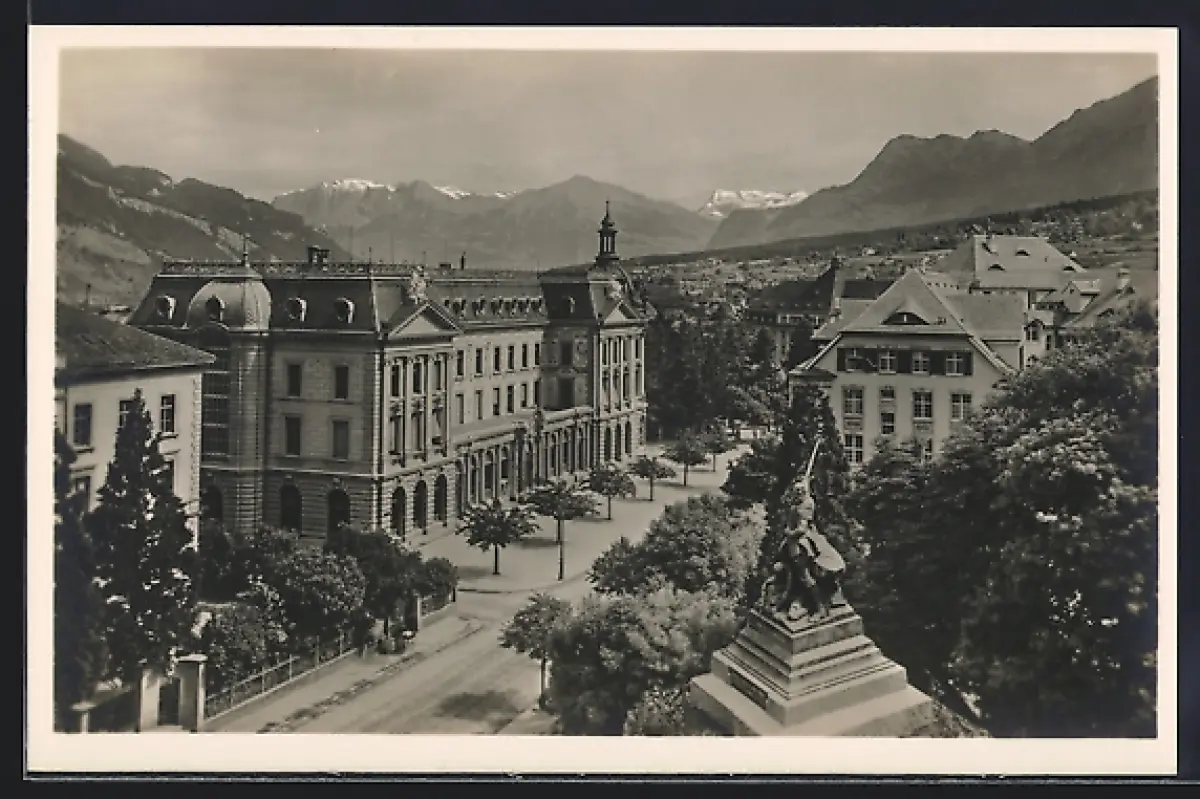 AK Chur, Fontanadenkmal mit Strassenpartie