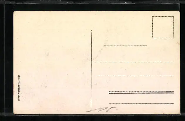 Personenbezogene Daten auf der Rückseite der Karte wurden durch blauen Textmarker unkenntlich gemacht. Die blauen Stellen sind auf die Vorderseite durchgeweicht und wirken sich negativ auf das Postkartenfoto aus