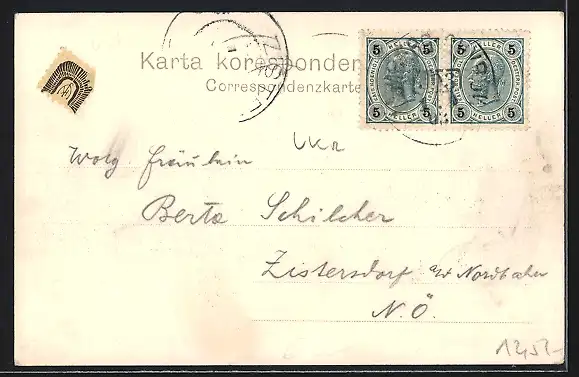 Personenbezogene Daten auf der Rückseite der Karte wurden durch blauen Textmarker unkenntlich gemacht. Die blauen Stellen sind auf die Vorderseite durchgeweicht und wirken sich negativ auf das Postkartenfoto aus