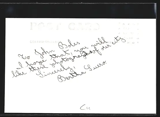 Personenbezogene Daten auf der Rückseite der Karte wurden durch blauen Textmarker unkenntlich gemacht. Die blauen Stellen sind auf die Vorderseite durchgeweicht und wirken sich negativ auf das Postkartenfoto aus
