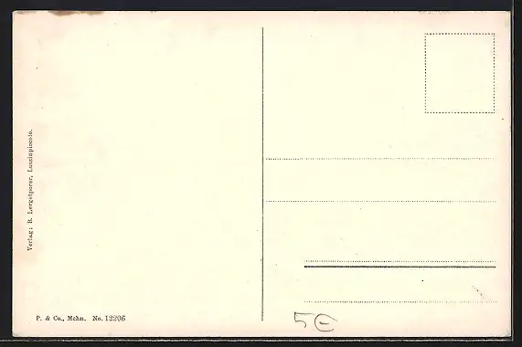 Personenbezogene Daten auf der Rückseite der Karte wurden durch blauen Textmarker unkenntlich gemacht. Die blauen Stellen sind auf die Vorderseite durchgeweicht und wirken sich negativ auf das Postkartenfoto aus