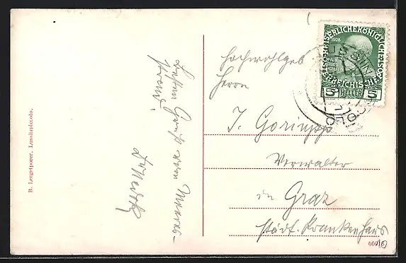 Personenbezogene Daten auf der Rückseite der Karte wurden durch blauen Textmarker unkenntlich gemacht. Die blauen Stellen sind auf die Vorderseite durchgeweicht und wirken sich negativ auf das Postkartenfoto aus