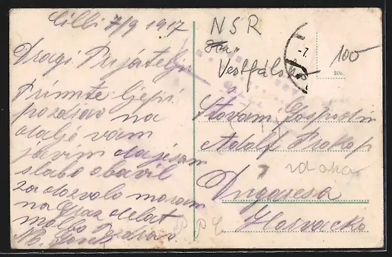 gelaufen 1917, Briefmarke entfernt, rückseitig Oberflächenschaden, guter Zustand