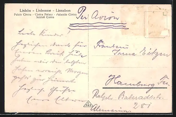 alte Ansichtskarte, gelaufen, Briefmarke entfernt, rückseitig Oberflächenschaden, guter Zustand