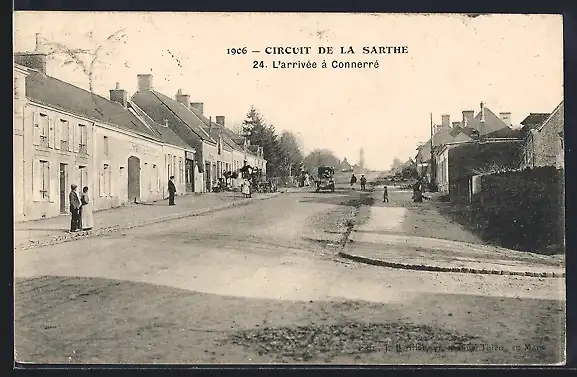 AK Circuit de la Sarthe 1906, L`arrivée à Connerré, Autorennen