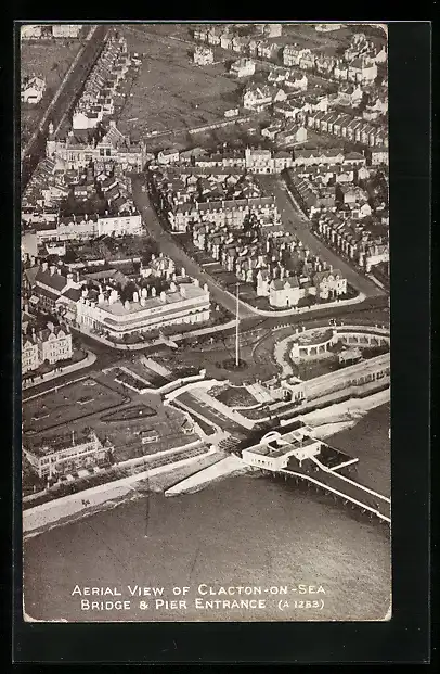 AK Clacton-on-Sea, Aerial View, Bridge and Pier Entrance