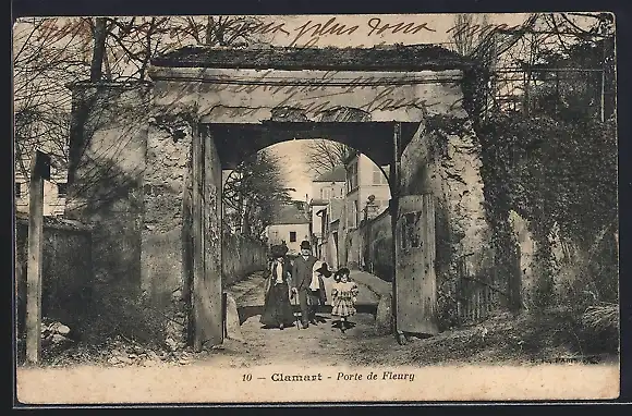 AK Clamart, Porte de Fleury avec des passants dans l`entrée ancienne