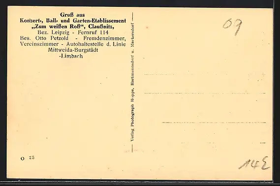 AK Claussnitz, Konzert, - Ball, - und Gartengasthaus Zum weissen Ross