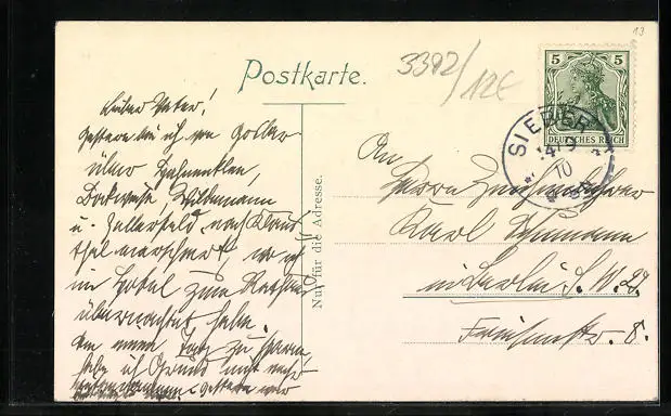 alte Ansichtskarte, gelaufen 1910, guter Zustand