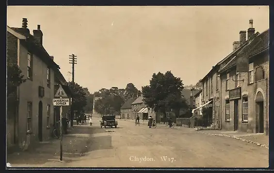 AK Claydon, Street with Road Sign: Dangerous Corner