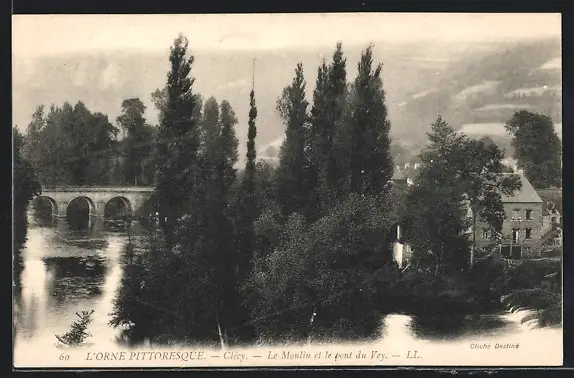 AK Clécy, Le Moulin et le Pont du Vey