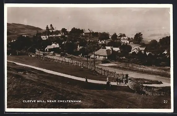AK Cleeve Hill near Cheltenham, Panorama mit Strassenpartie