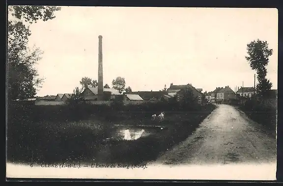AK Clere, L`entrée du bourg avec cheminée et chemin rural