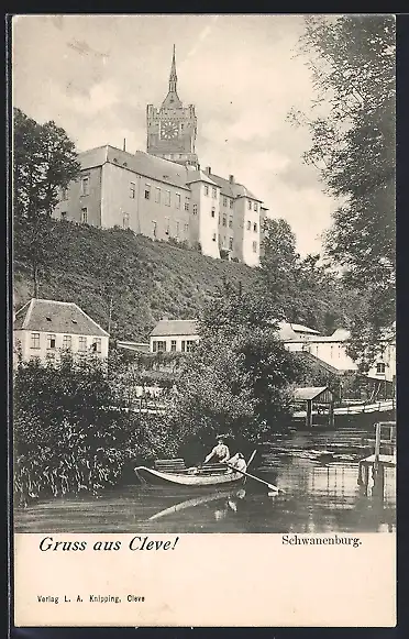 AK Cleve, Flusspartie mit Ruderbooten an der Schwanenburg