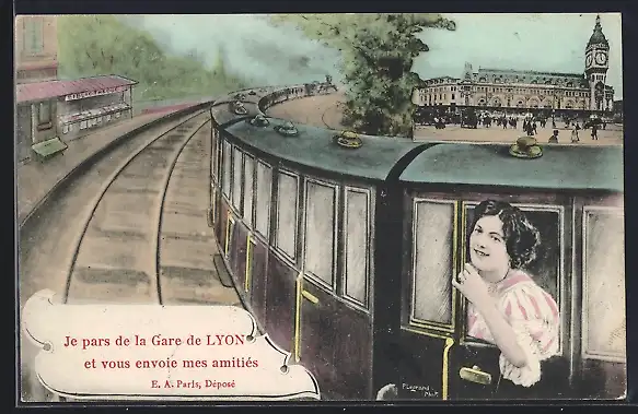 AK Clichy, La Gare, Zug passiert den Bahnhof