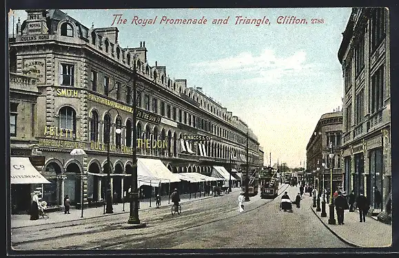 AK Clifton, The Royal Promenade and Triangle, Strassenbahn