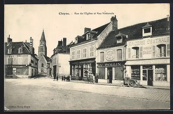 AK Cloyes, Rue de l`Église et Rue Nationale