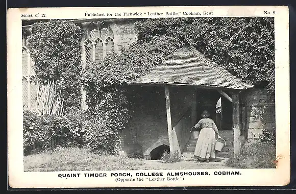 AK Cobham, Quaint Timber Porch, College Almshouses