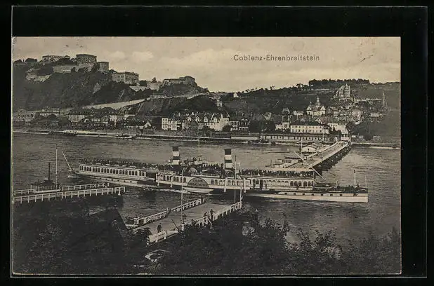 AK Coblenz-Ehrenbreitstein, Rheindampfer Kaiserin Auguste Victoria passiert Schiffsbrücke