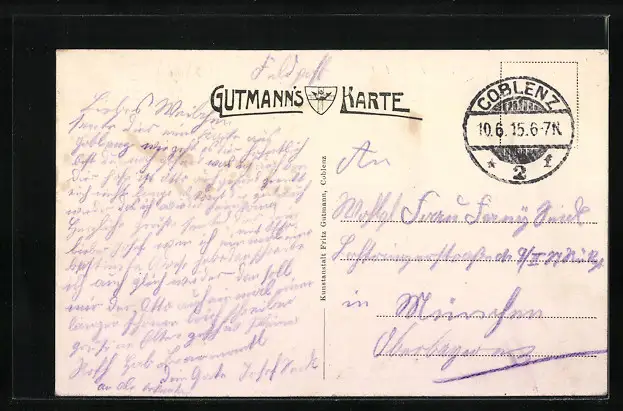 alte Ansichtskarte, gelaufen 1915, guter Zustand