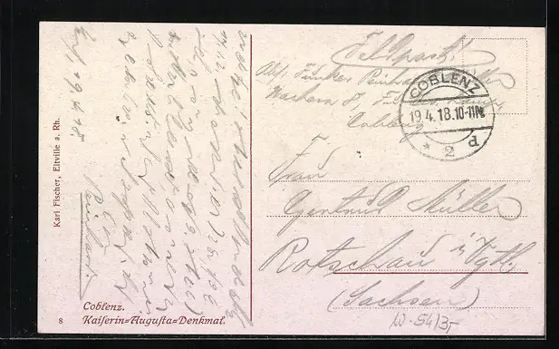 AK Coblenz, Kaiserin-Augusta-Denkmal