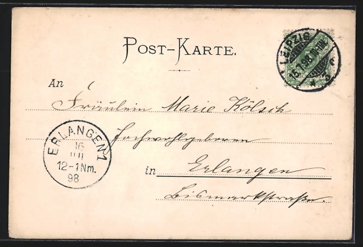 alte Ansichtskarte, gelaufen 1898, Eckknick li. oben, Stempelspur, guter Zustand