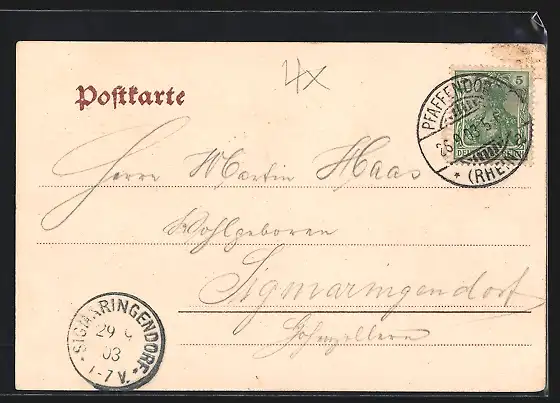 alte Ansichtskarte, gelaufen 1903, Stempelspur, guter Zustand