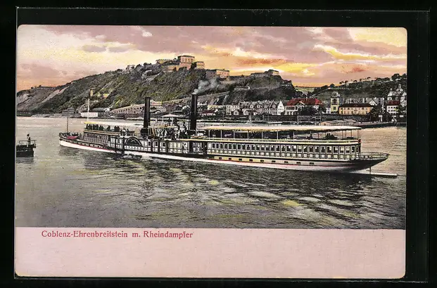 AK Coblenz, Teilansicht und Festung Ehrenbreitstein mit Rheindampfer