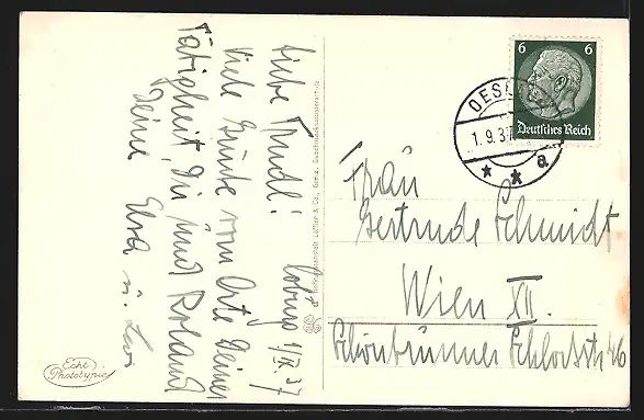 alte Ansichtskarte, gelaufen 1937, guter Zustand