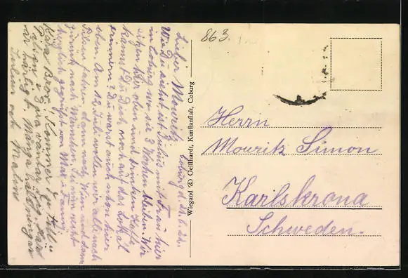 alte Ansichtskarte, gelaufen 1922, Briefmarke entfernt, guter Zustand