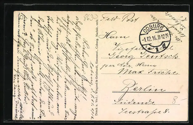 alte Ansichtskarte, gelaufen 1916 als Feldpost, guter Zustand