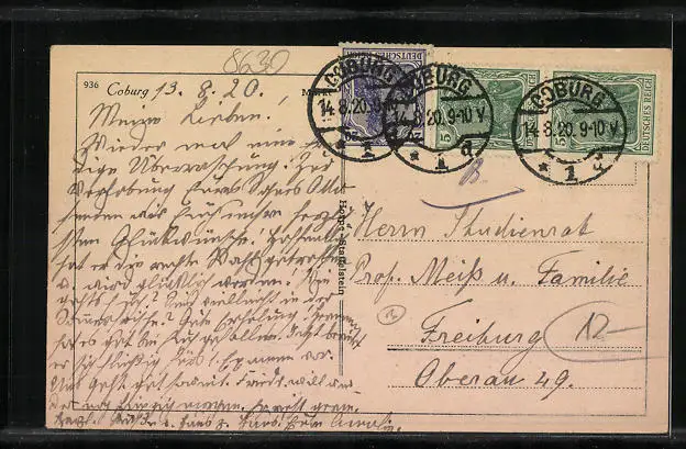 alte Ansichtskarte, gelaufen 1920, Stempelspur, guter Zustand