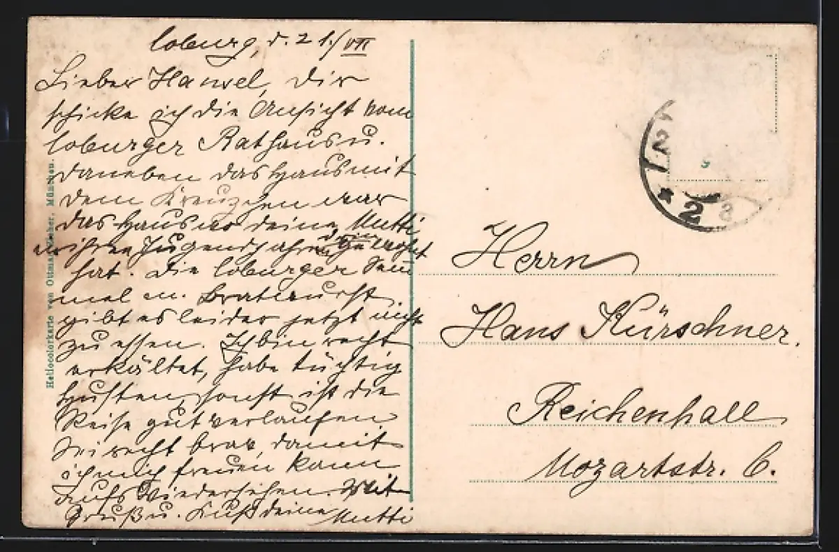alte Ansichtskarte, gelaufen, Briefmarke entfernt, rückseitig Oberflächenschaden, guter Zustand