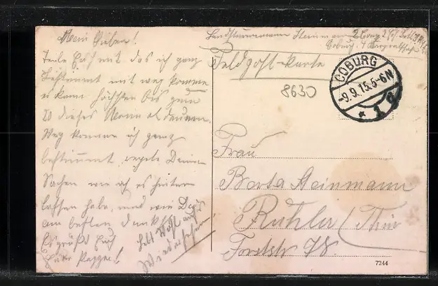 alte Ansichtskarte, gelaufen 1915 als Feldpost, guter Zustand