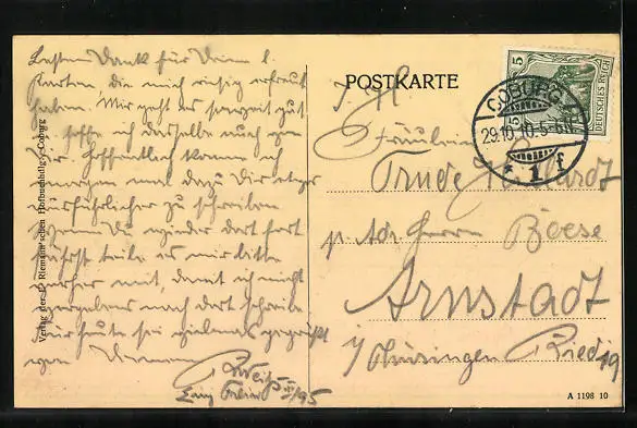 alte Ansichtskarte, gelaufen 1910, guter Zustand