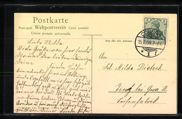 alte Ansichtskarte, gelaufen 1908, guter Zustand