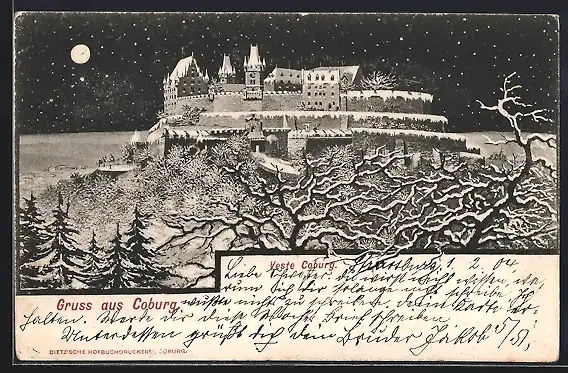 AK Coburg, Winterlandschaft der Veste Coburg