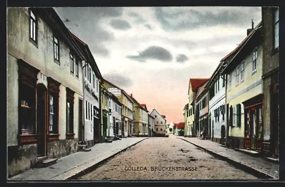 AK Cölleda, Partie in der Brückenstrasse mit Geschäften