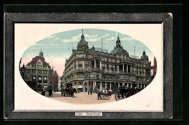 AK Cöln, Dom-Hotel, Strassenansicht mit Kutschen