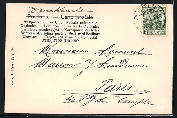 alte Ansichtskarte, gelaufen 1905, Stempelspur, guter Zustand