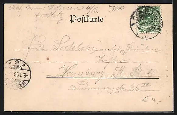alte Ansichtskarte, gelaufen 1898, Stempelspur, guter Zustand