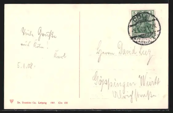 alte Ansichtskarte, gelaufen 1908, guter Zustand