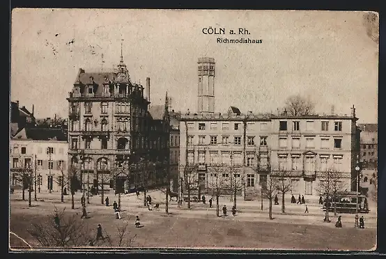 AK Cöln a. Rh., Richmodishaus mit Strassenbahn