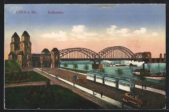AK Cöln a. Rh., Südbrücke, Strassenbahn