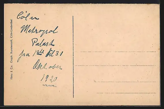 Personenbezogene Daten auf der Rückseite der Karte wurden durch blauen Textmarker unkenntlich gemacht. Die blauen Stellen sind auf die Vorderseite durchgeweicht und wirken sich negativ auf das Postkartenfoto aus