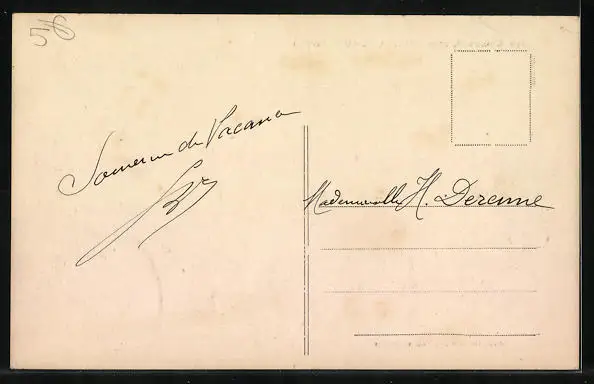 Personenbezogene Daten auf der Rückseite der Karte wurden durch blauen Textmarker unkenntlich gemacht. Die blauen Stellen sind auf die Vorderseite durchgeweicht und wirken sich negativ auf das Postkartenfoto aus