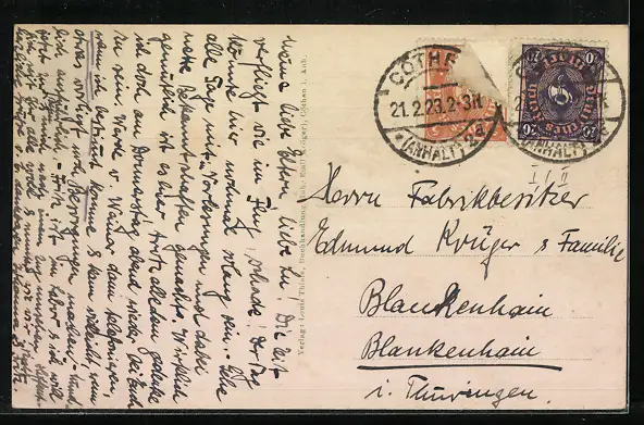 alte Ansichtskarte, gelaufen 1923, guter Zustand