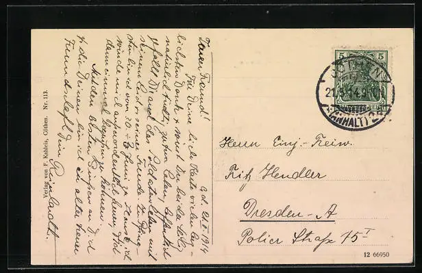 alte Ansichtskarte, gelaufen 1914, guter Zustand