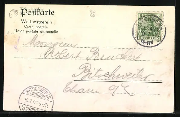 alte Ansichtskarte, gelaufen 1905, guter Zustand