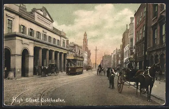 AK Colchester, High Street, Strassenbahn